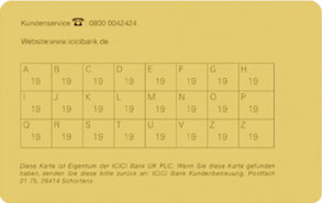 Die Grid-Karte ist ein sicheres und praktisches Mittel, um Ihr ICICI Bank Konto vor unberechtigten Transaktionen zu schützen und hat die gleiche Funktion wie eine TAN-Liste. Im Gegensatz zu einer TAN-Liste wird Ihre Grid-Karte jedoch nicht aufgebraucht. Sie können sie für beliebig viele Transaktionen verwenden.